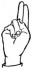На ћирилици написано БУДИМИР ПЕРОВИЋ састоји се из 14 слова [?]. Исписано ћириличном једноручном азбуком за глувонеме: